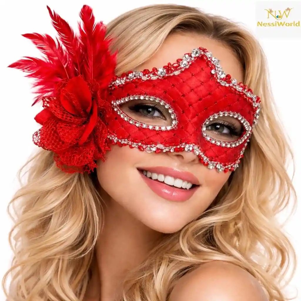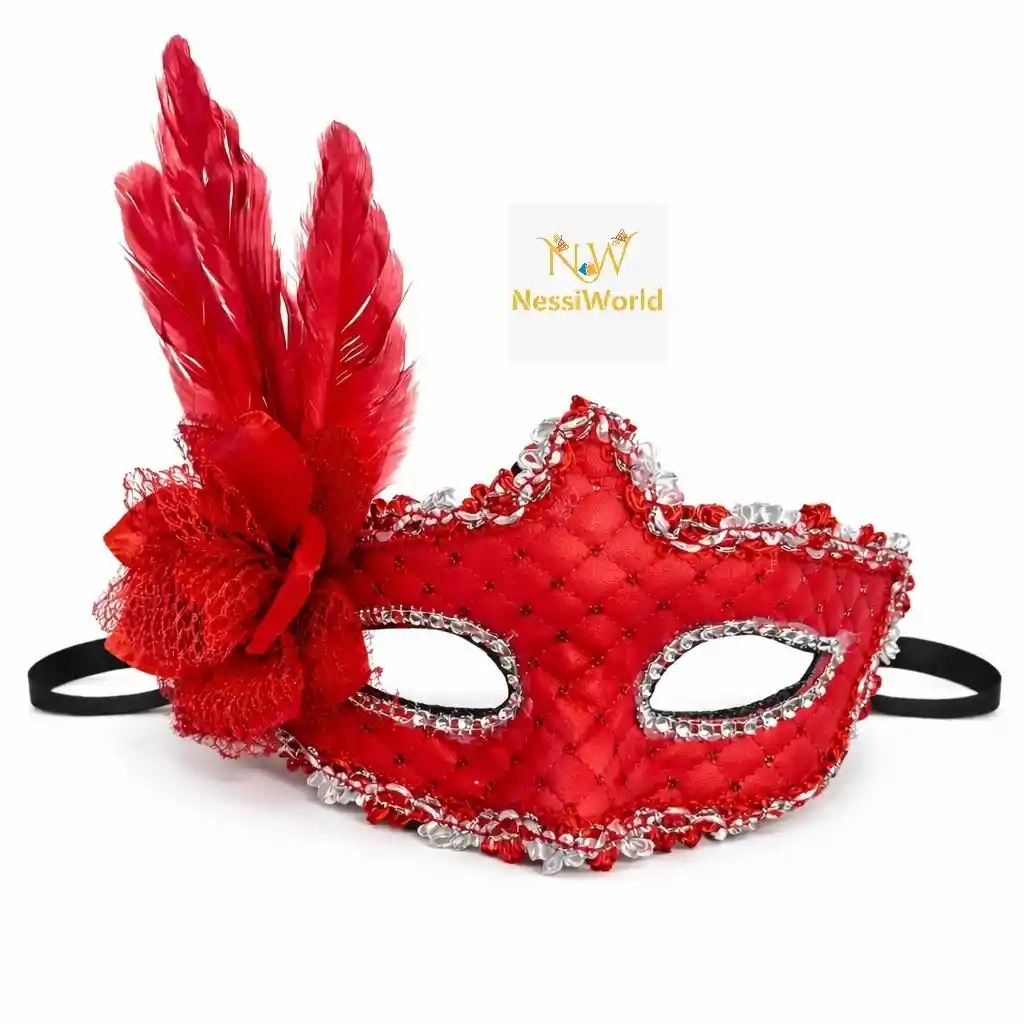 Kırmızı Tüylü Venedik Lüks Balo Maskesi