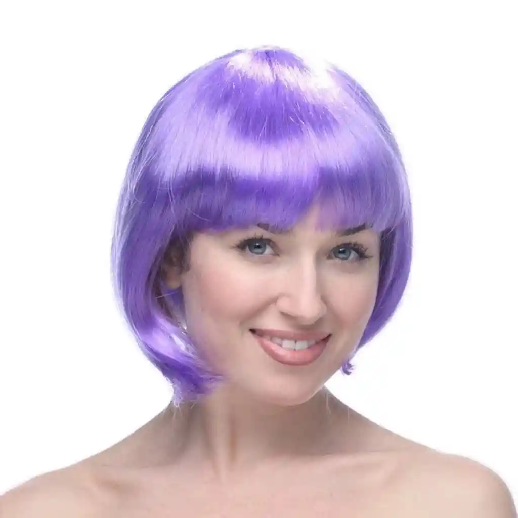 Lila Renk Kısa Model Parti Peruğu - Lila Renk Küt Saç
