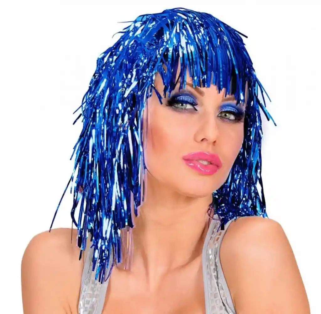 Mavi Işıltılı Metalize Parti Peruğu