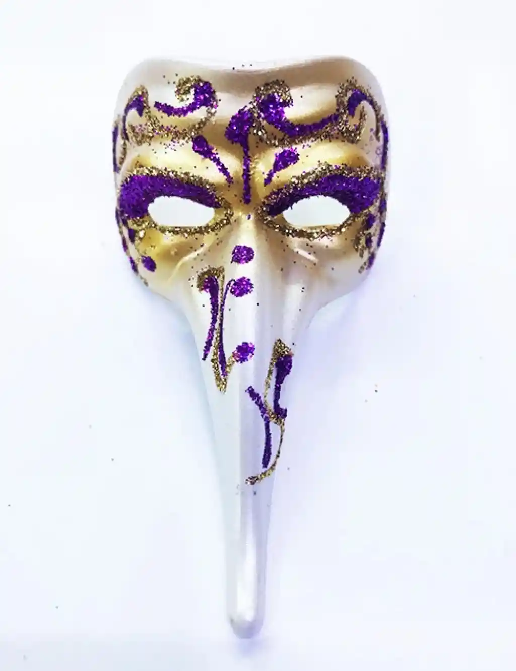 Mor Renk İşlemeli Seramik Malzemeden İmal Venedik Uzun Maske Magnet