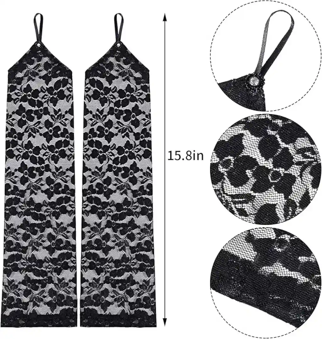 • Parmak Askılı Zarif Gece Şıklığı Dantel Eldiven 40 cm