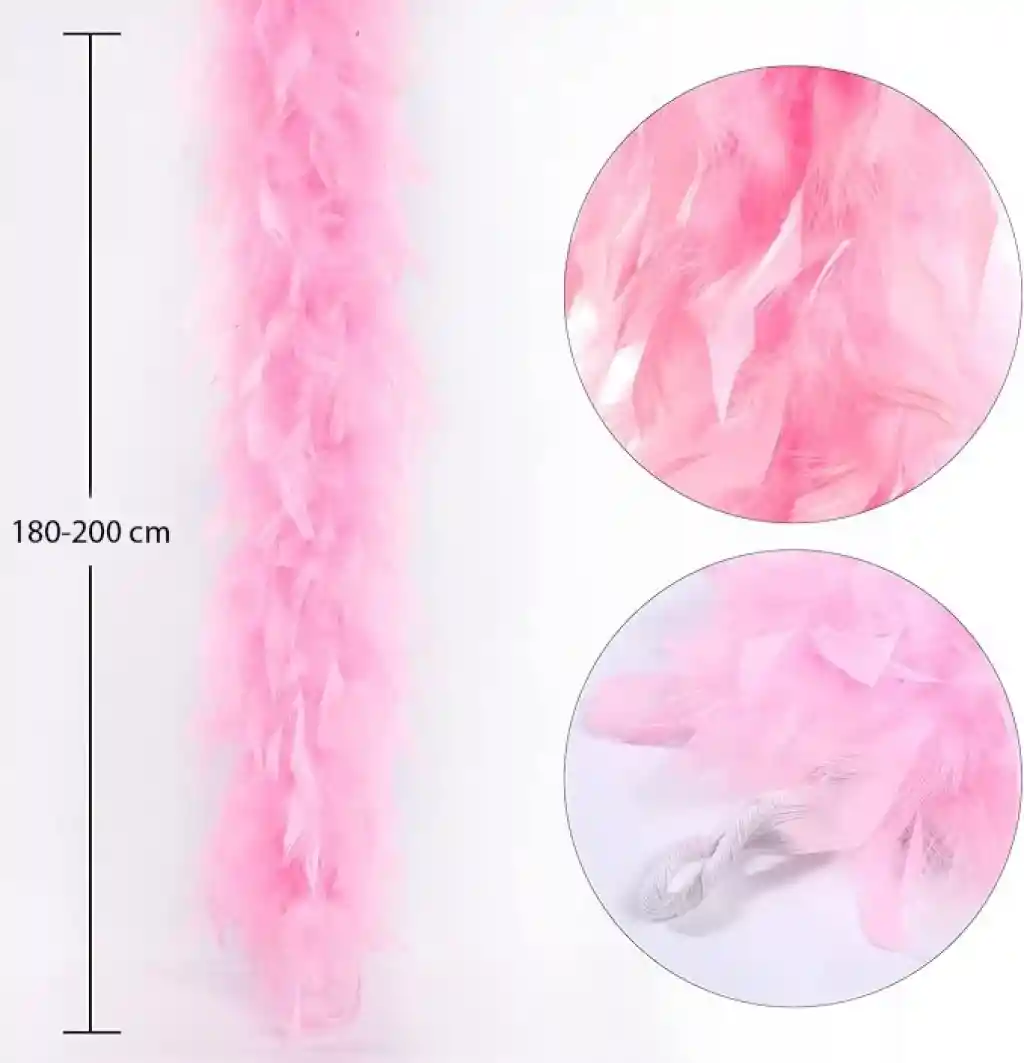 • Pembe Renk Kabarık Kalın Otriş Boa Tüy 6 cm Genişlik 180-200 cm Uzunluk