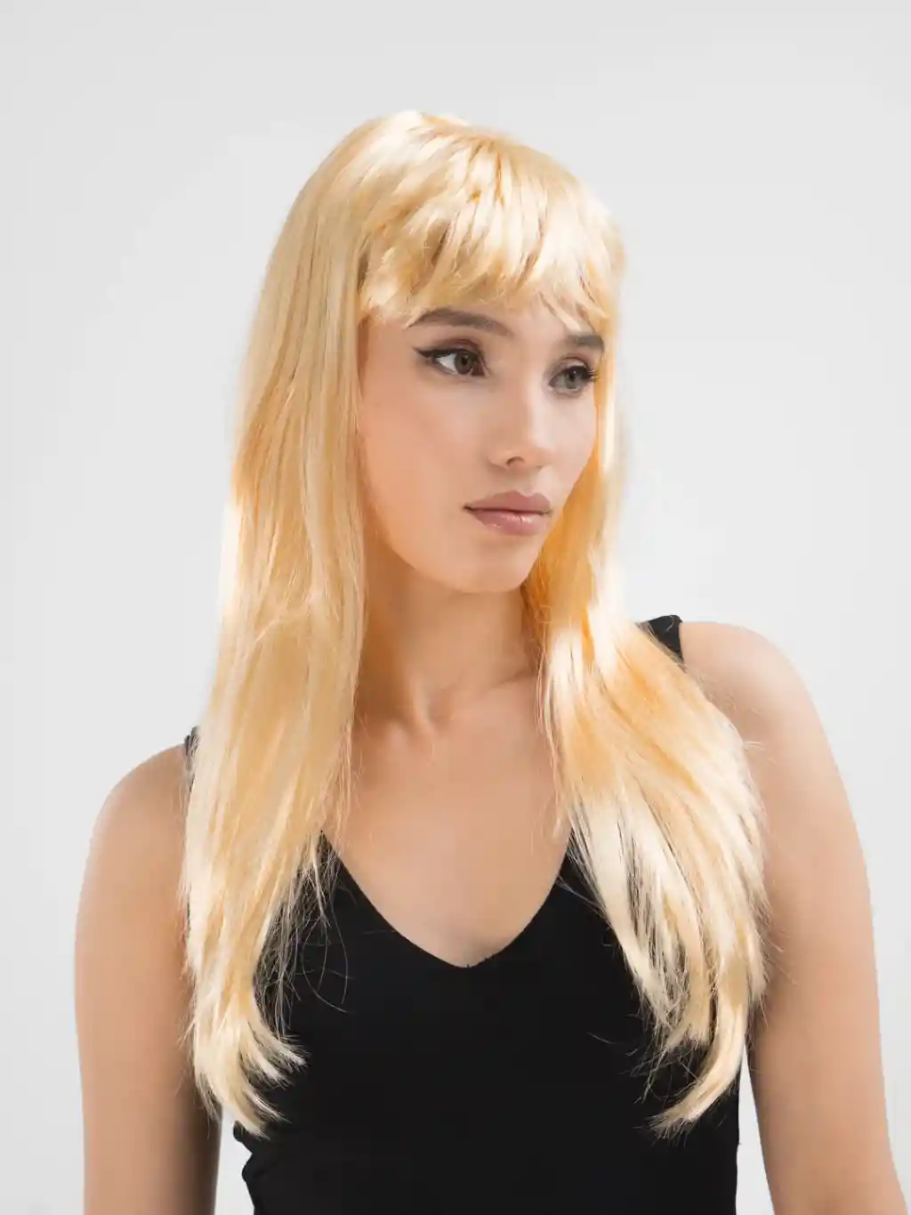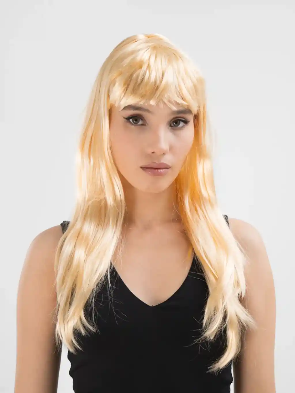 • Platin Altın Dore Renk Uzun Düz Parti Peruğu