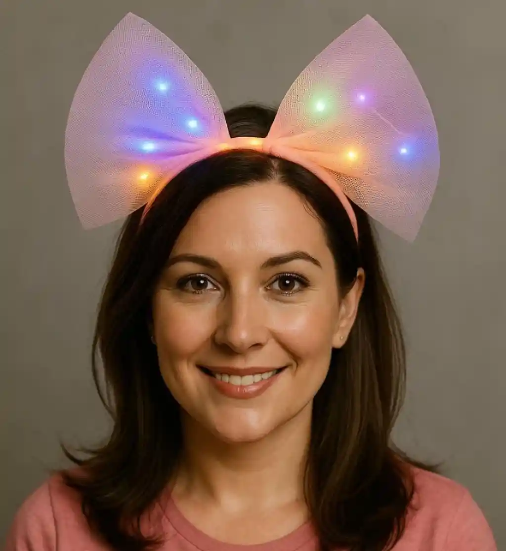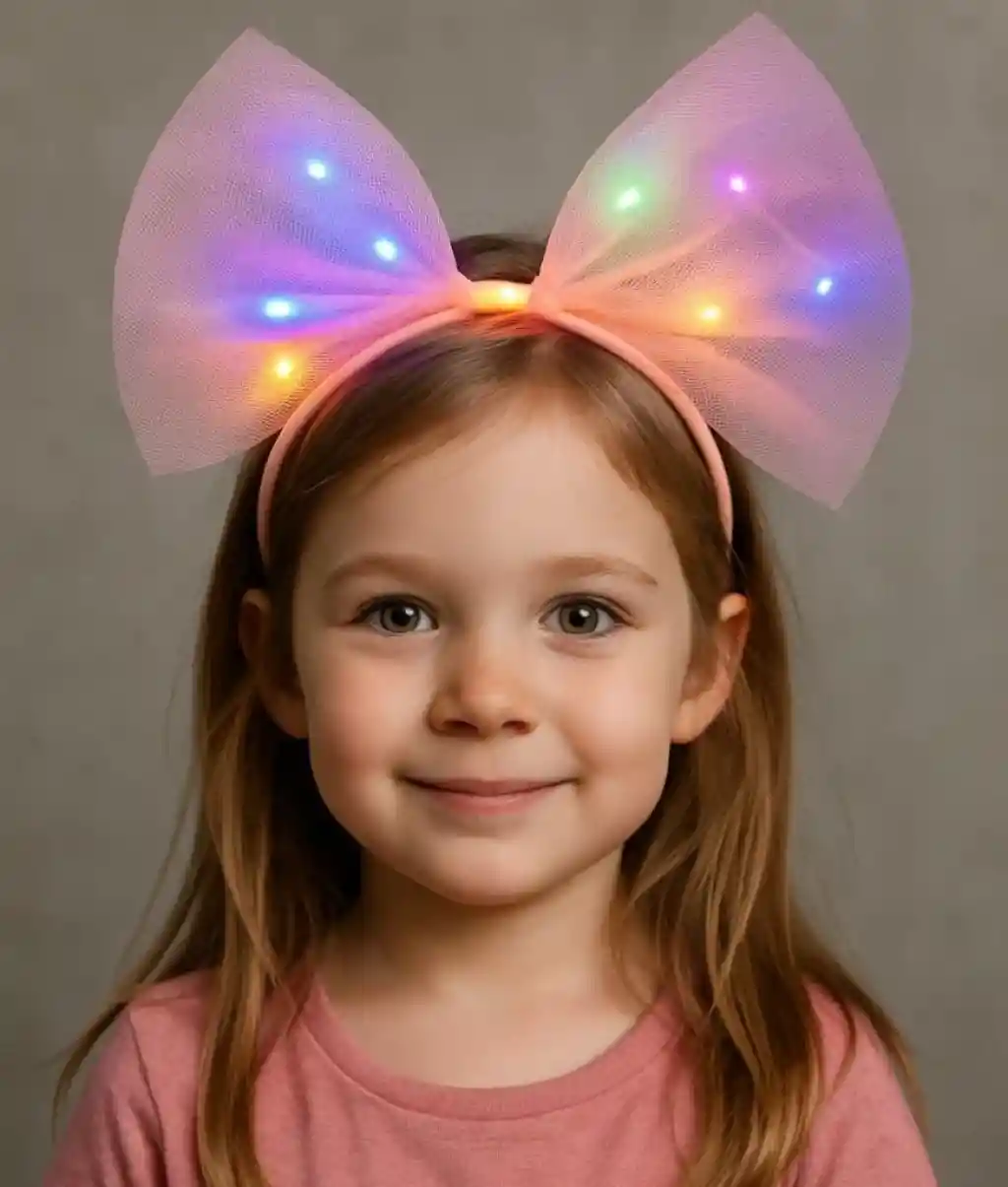 Rengarenk Led Işıklı Fiyonk Şekilli Tül Parti Tacı Pembe Renk 25x25 cm