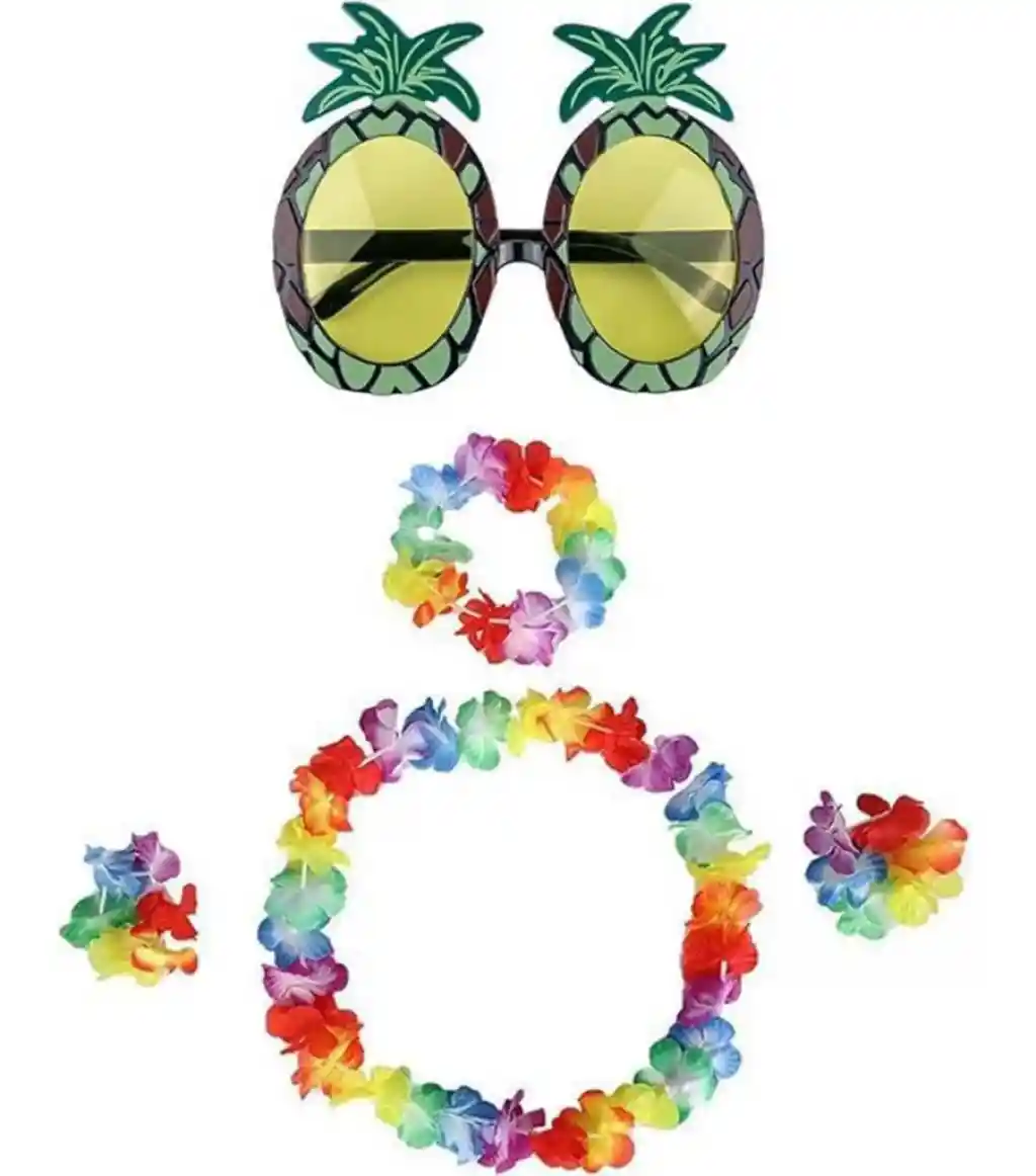 • Renkli Ananas Gözlük, Taç, Kolye ve Bileklik Seti