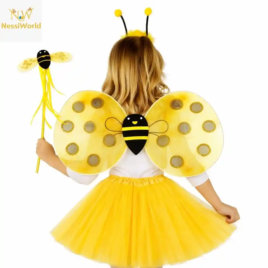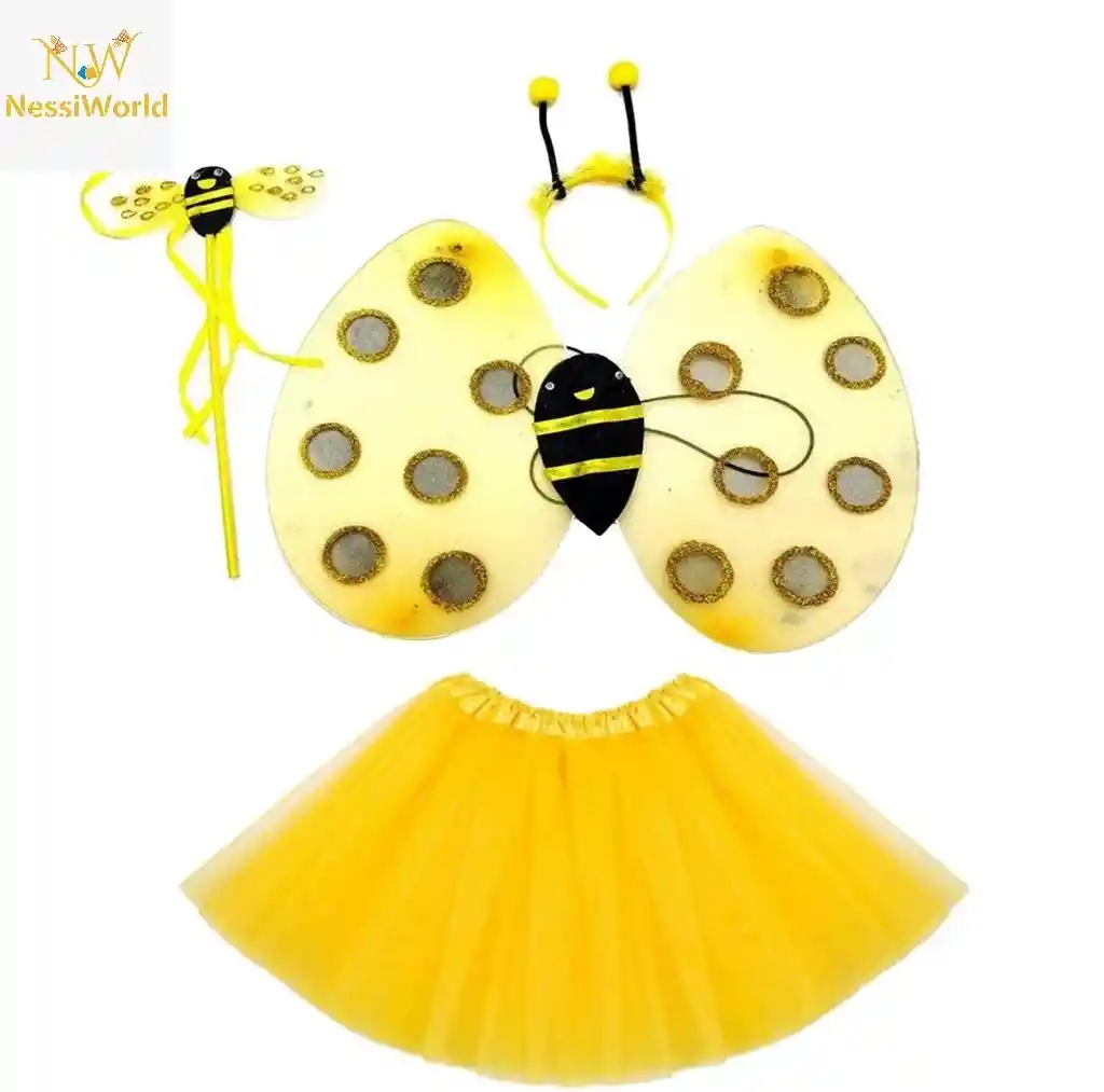 Sarı Renk Arı Kanadı Kostüm Seti (Tütü, Kanat, Taç, Asa)