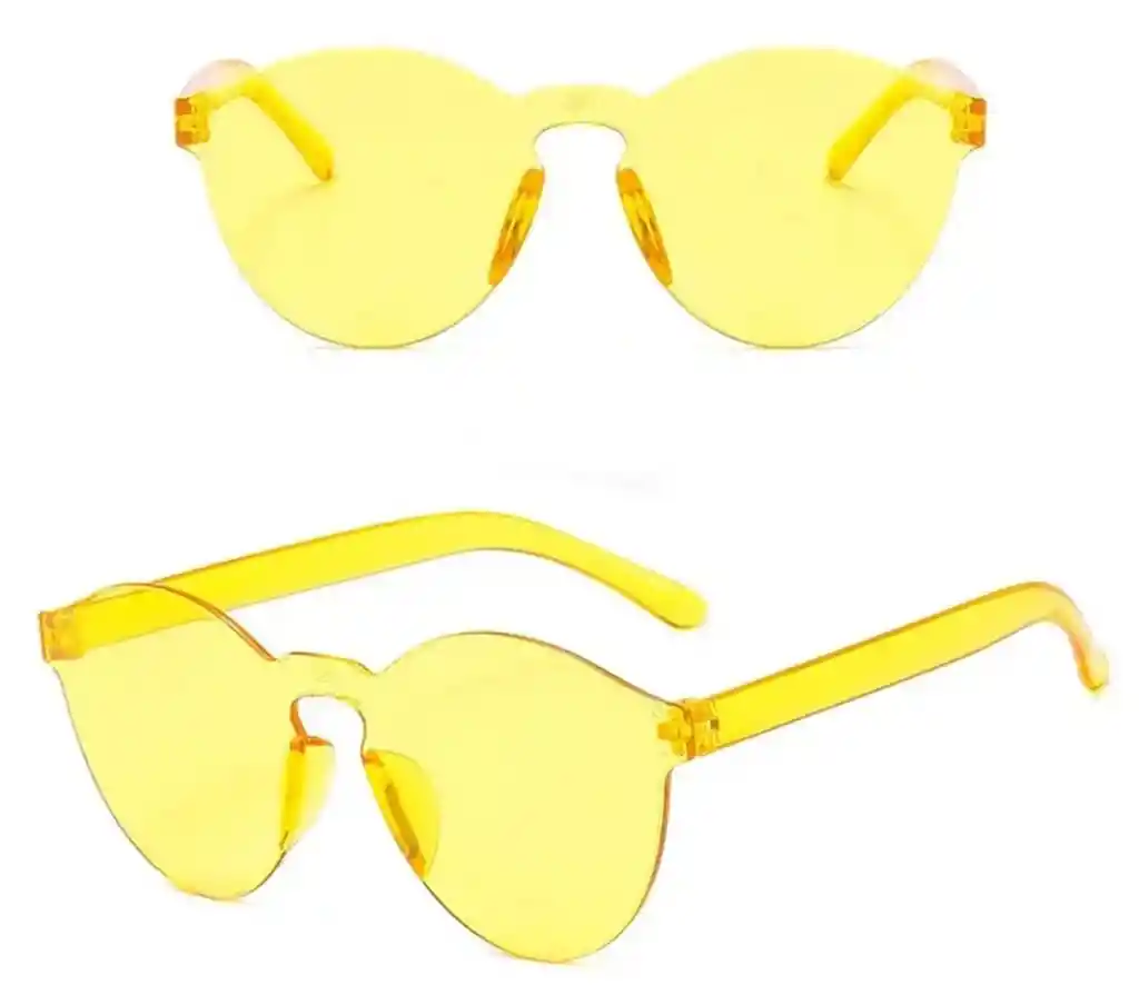 • Sert Mika Oval Şekilli Çerçevesiz Sarı Gözlük Retro Parti 5x14 cm