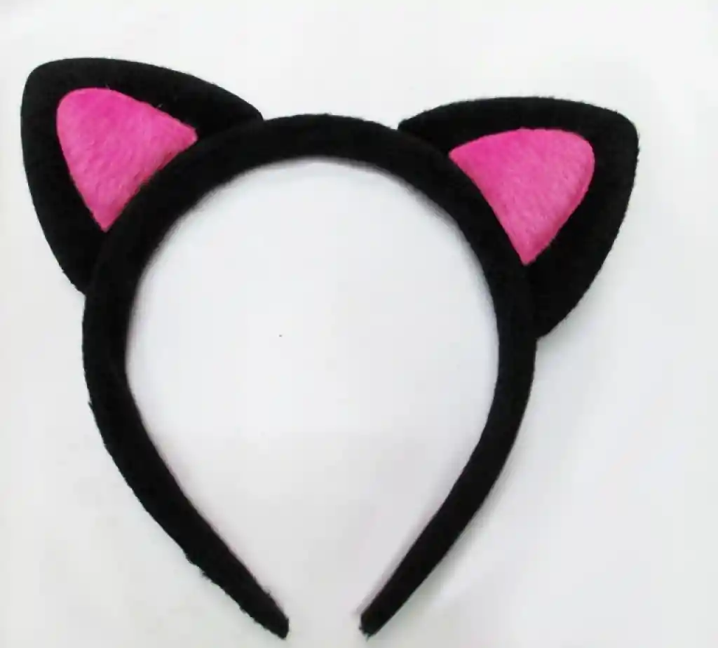 Sevimli Kedi Kulak Pofuduk Kedi Taç Siyah İçi Şeker Fuşya Renk 17x15 cm