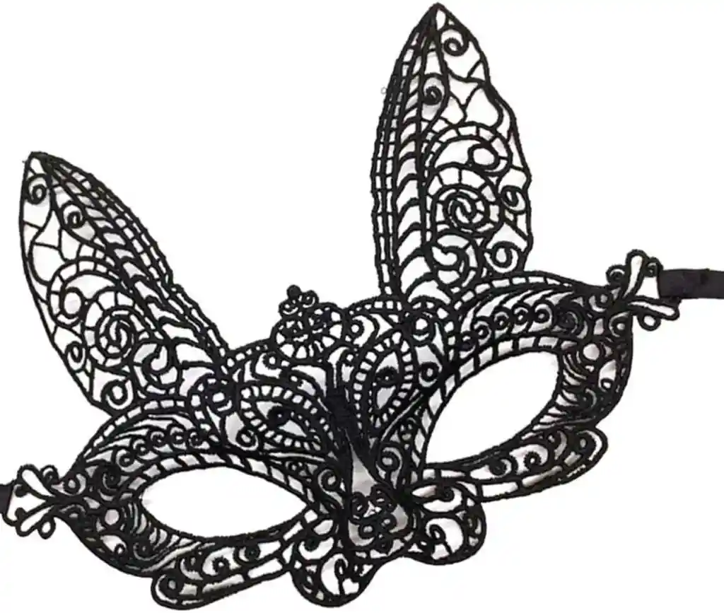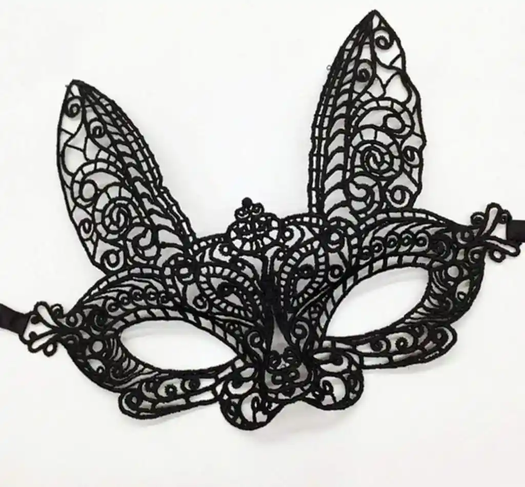 • Siyah Renk Dantel Kesim Dantel İşlemeli Balo Parti Maskesi 7 No