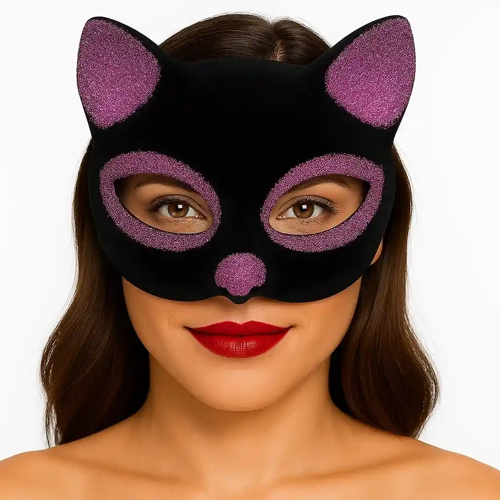 • Siyah Renk Pembe Simli Süet Kedi Maskesi 18x14 cm
