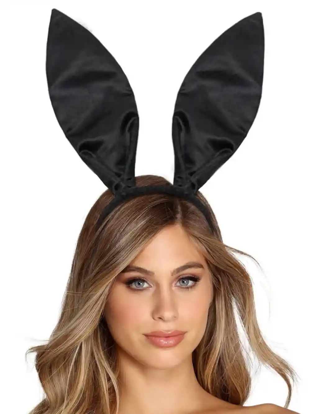 Siyah Renk Saten Kaplama Şekil Verilebilir Tavşan Kulak Taç 35x11 cm