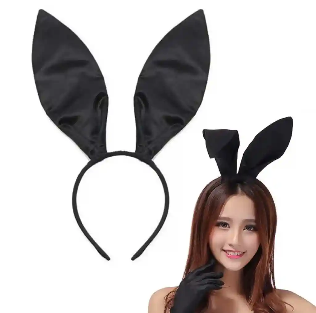 • Siyah Renk Saten Kaplama Şekil Verilebilir Tavşan Kulak Taç 35x11 cm