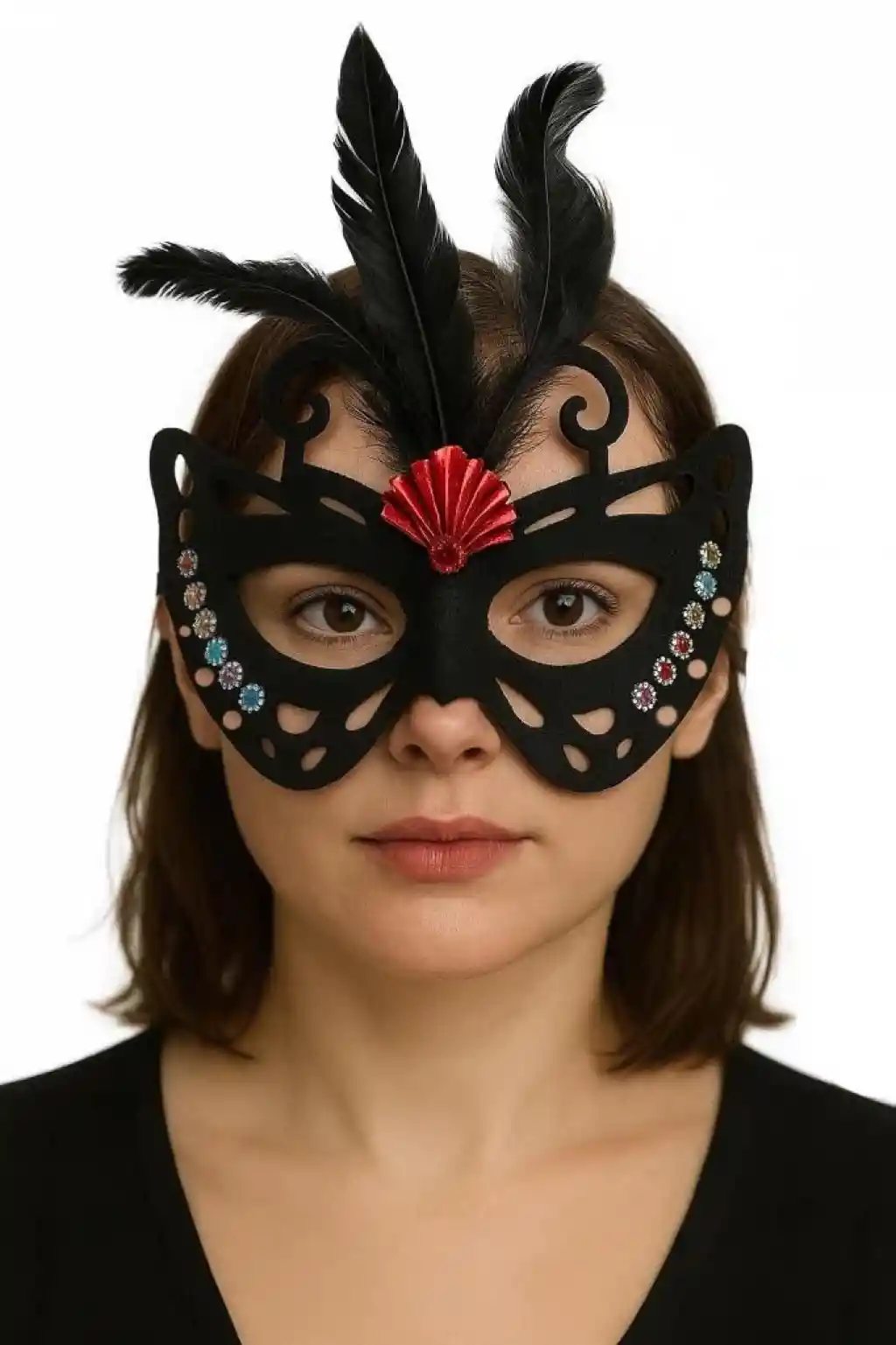 • Siyah Renk Siyah Süet Kaplama Tüylü Kelebek Figür Parti Maskesi 24x18 cm