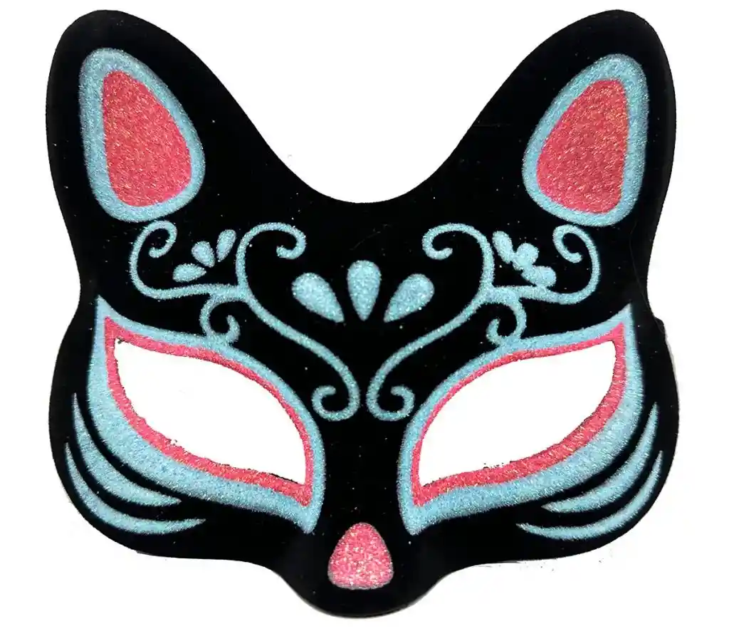 • Siyah Renk Üzeri Mavi Kırmızı Simli Süet Kaplama Kedi Maskesi 17x14 cm