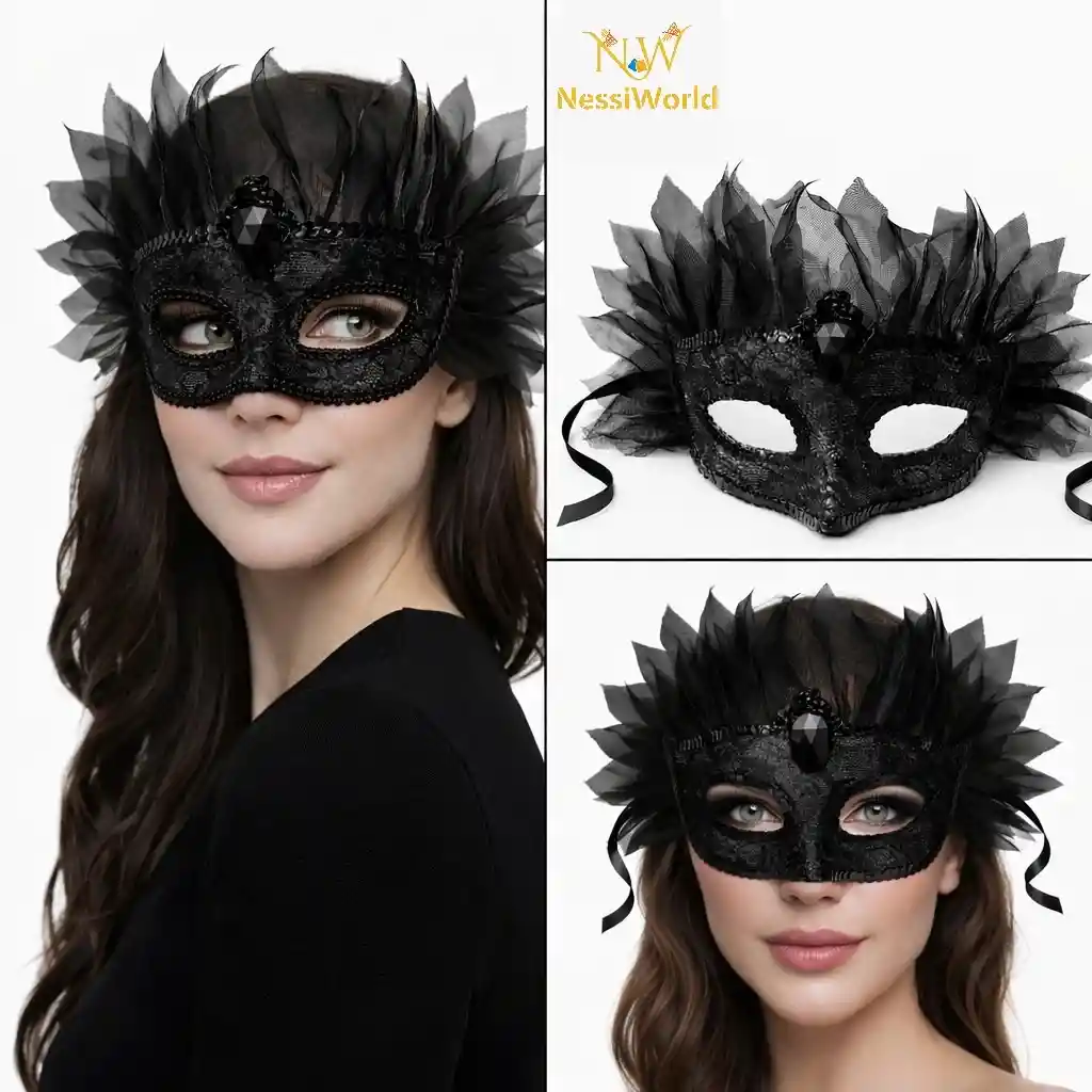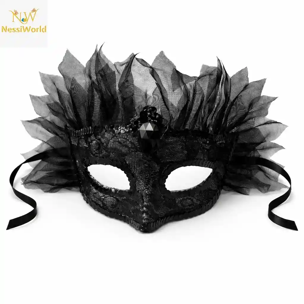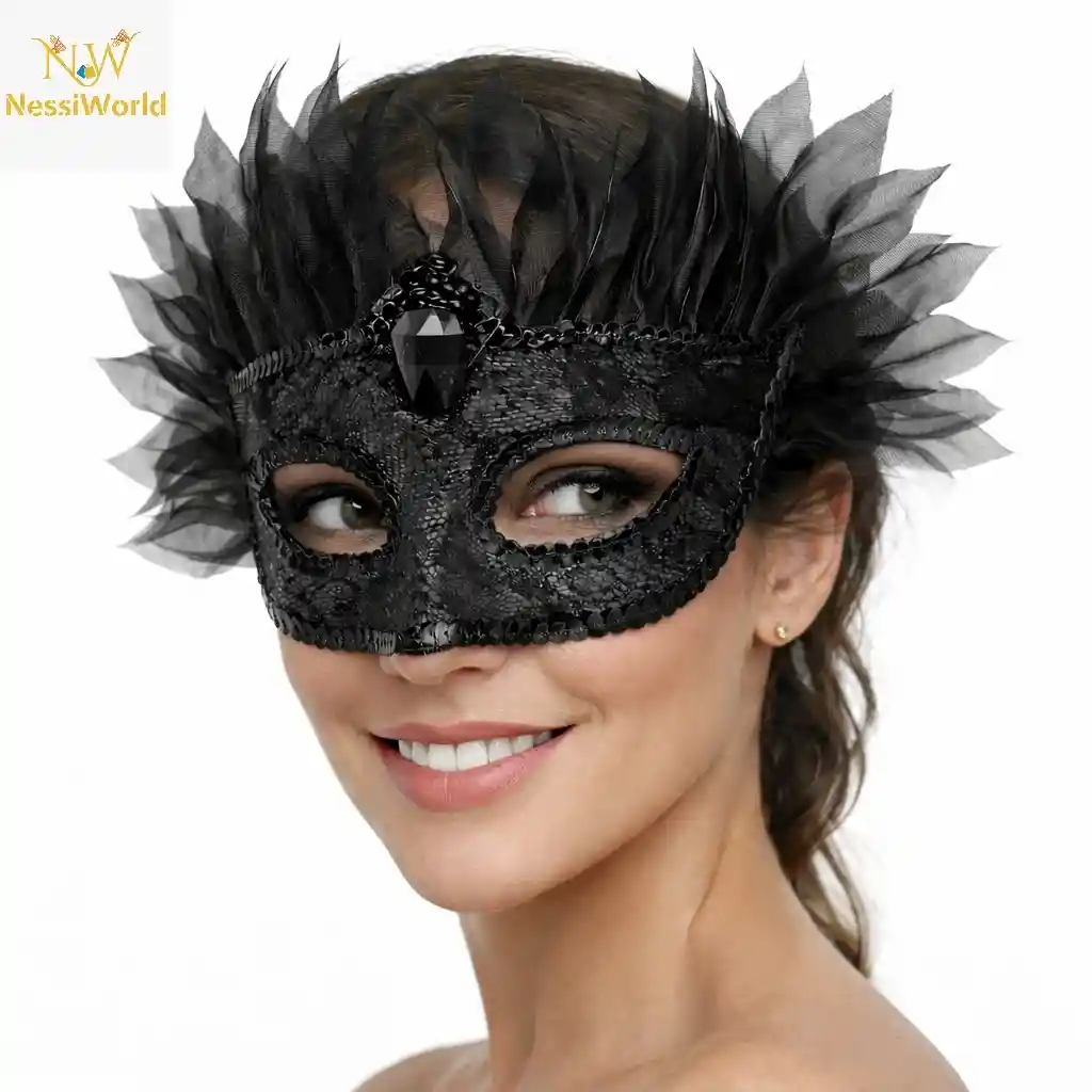 Siyah Taşlı Venedik Maskesi Lüks Tüllü Parti Maskesi