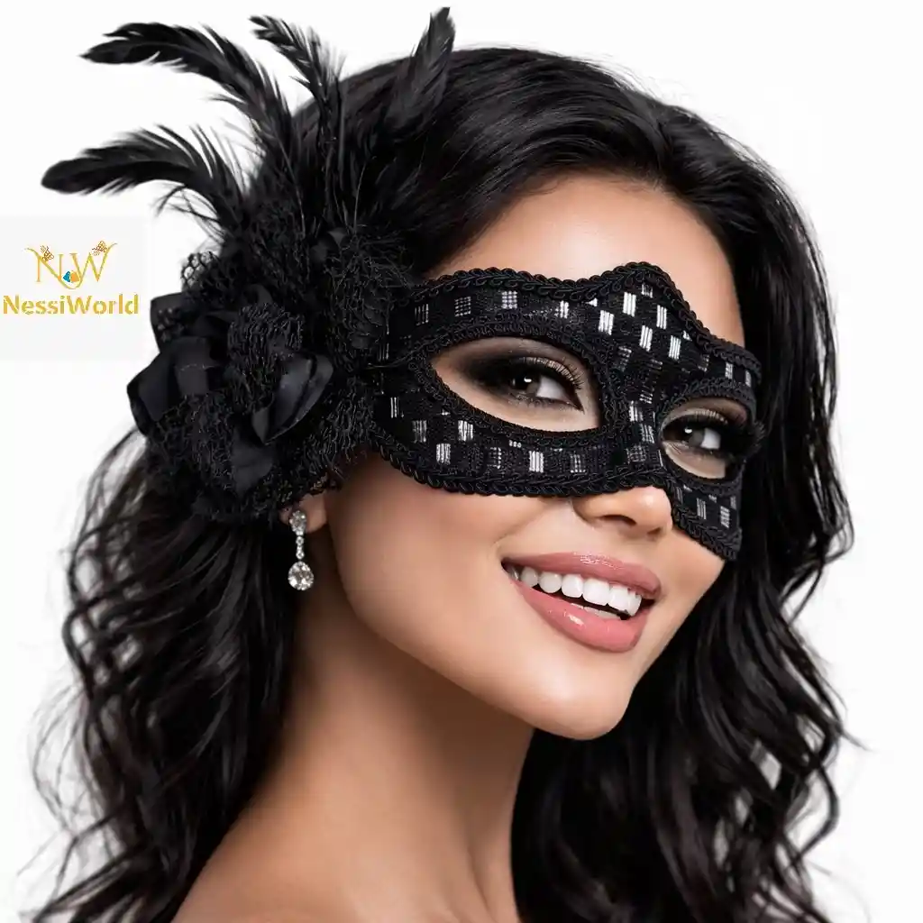 Siyah Tüylü Balo Maskesi Kadın Parti Aksesuarı