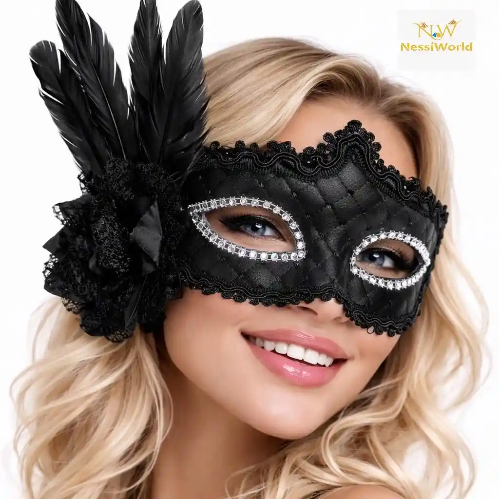 Siyah Tüylü Venedik Lüks Balo Maskesi