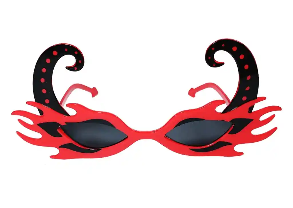Siyah Boynuzlu Kırmızı Renk Alevli Parti Gözlüğü 21x10cm