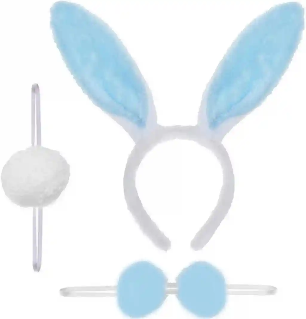 • Tavşan Kostüm Seti Taç Papyon Ponpon Kuyruk Mavi