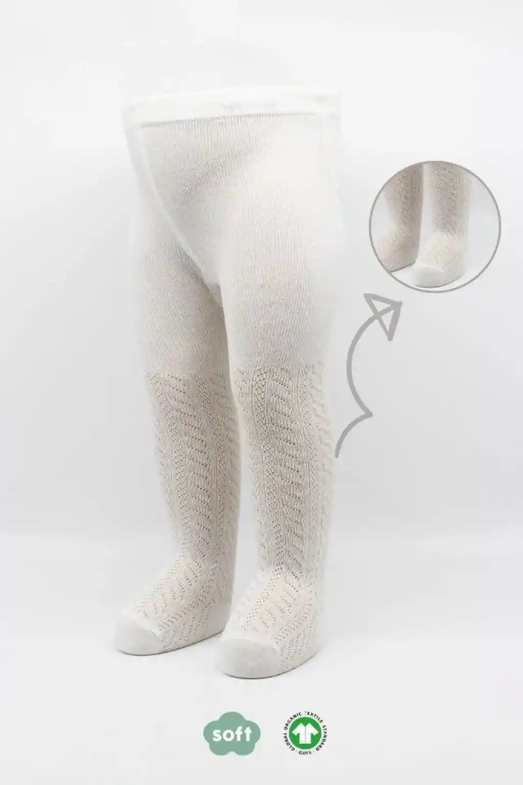 Tekli Zikzak Kabartma Penye Külotlu Çorap BS50108 Ekru