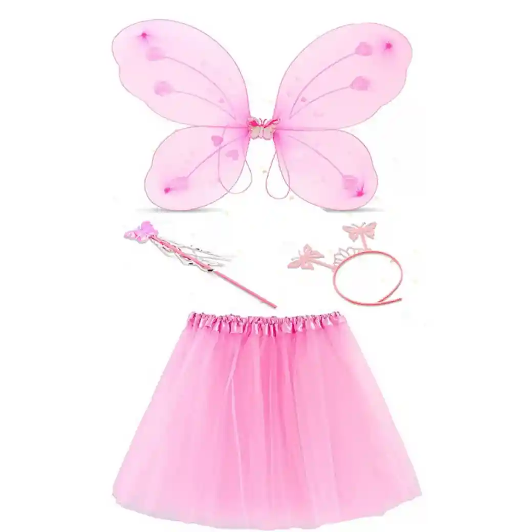 • Toz Pembe Kelebek Kostümü - Toz Pembe Kelebek Kostüm ANessiWorldesuar Seti 4 Parça
