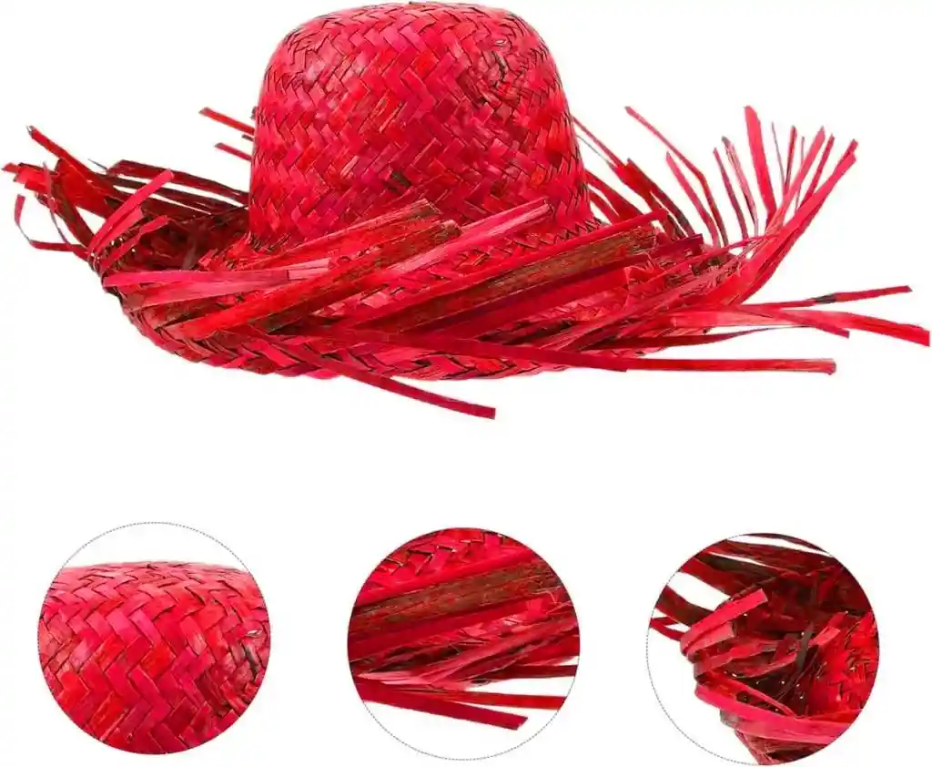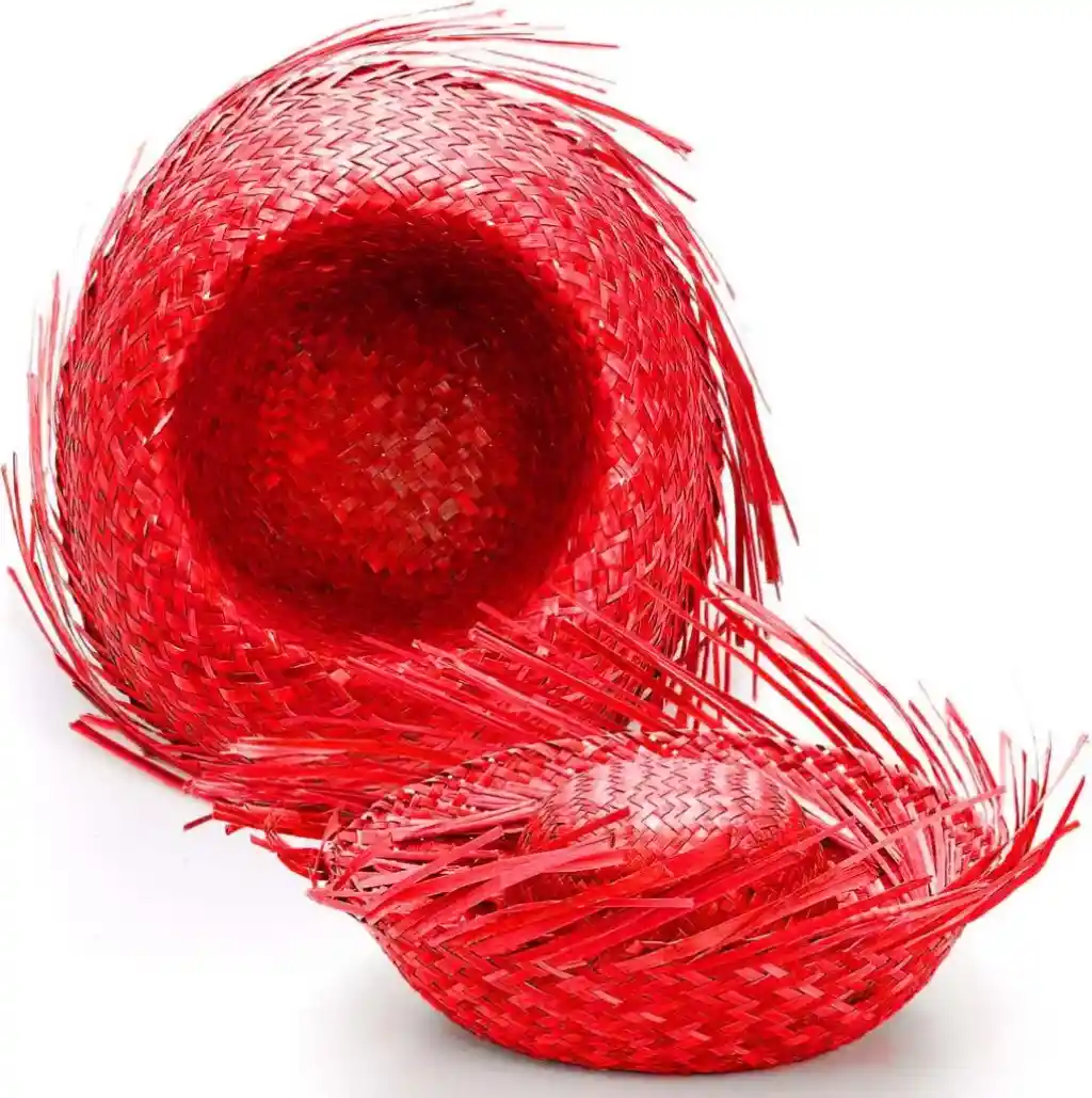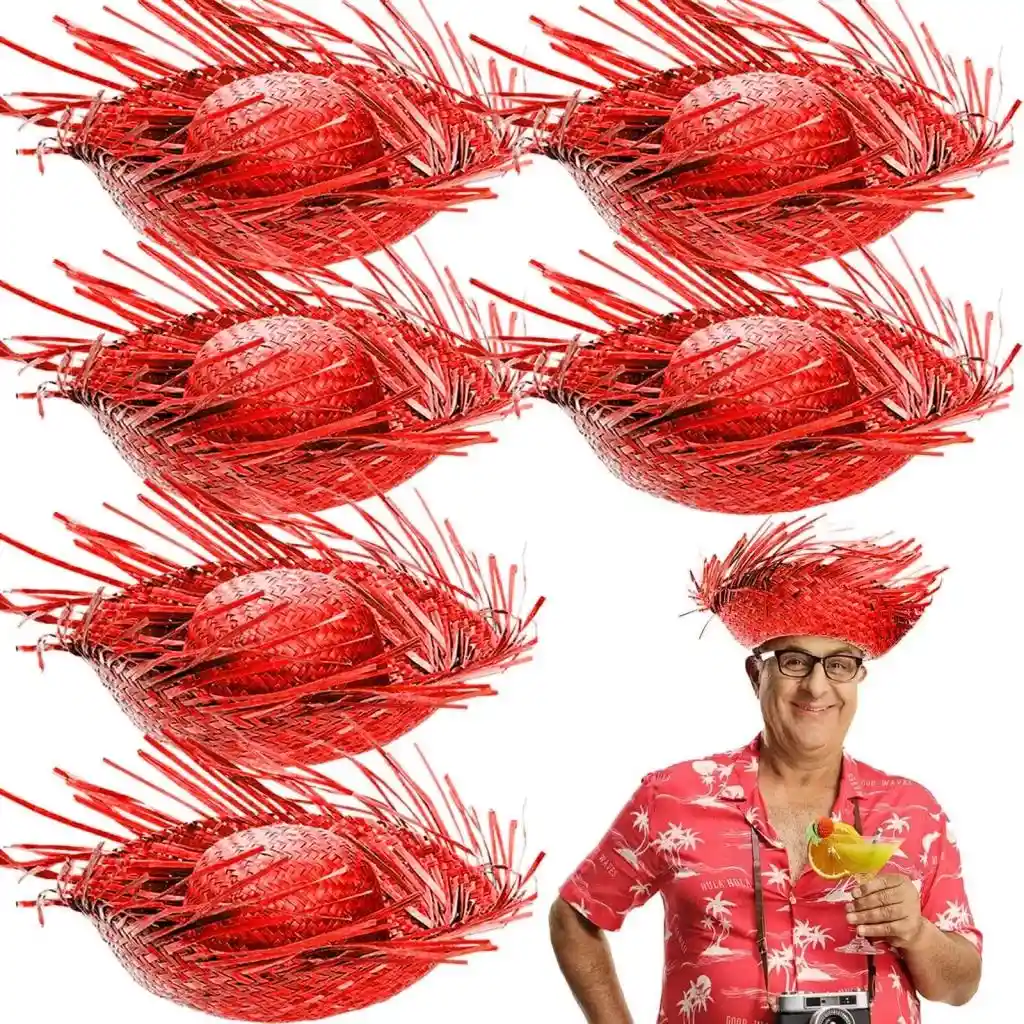 • Tropikal Parti Kırmızı Hasır Hawaii Şapkası 13x36 cm