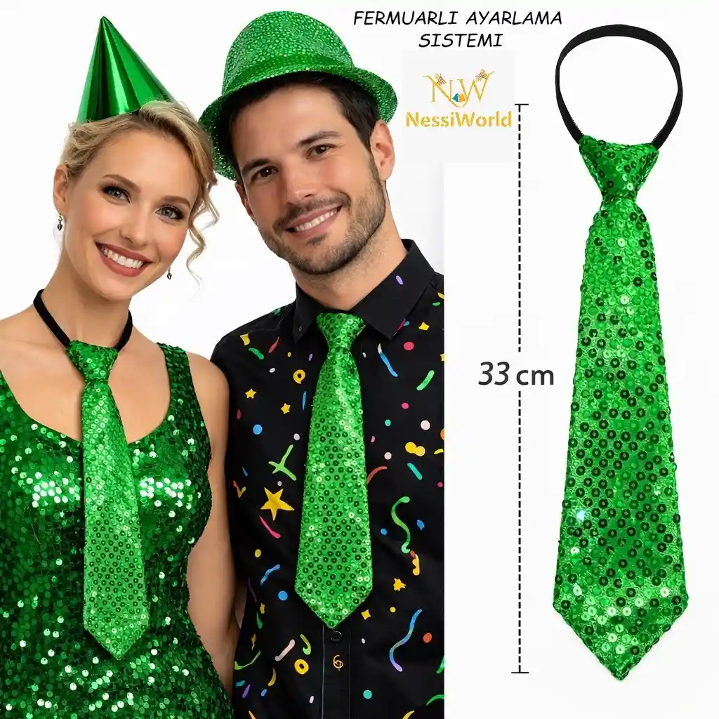 Yeşil Renk Pul Payetli Işıltılı Parti Kravatı 33 cm